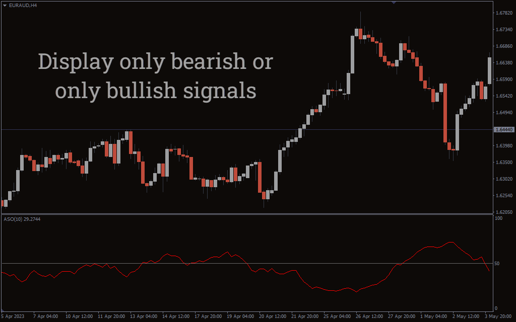 The ASO indicator for MetaTrader 4 is otherwise known as the Average Sentiment Oscillator indicator. It is a trend-following oscillator that shows the sentiment of the market and also delivers buy/sell signals.