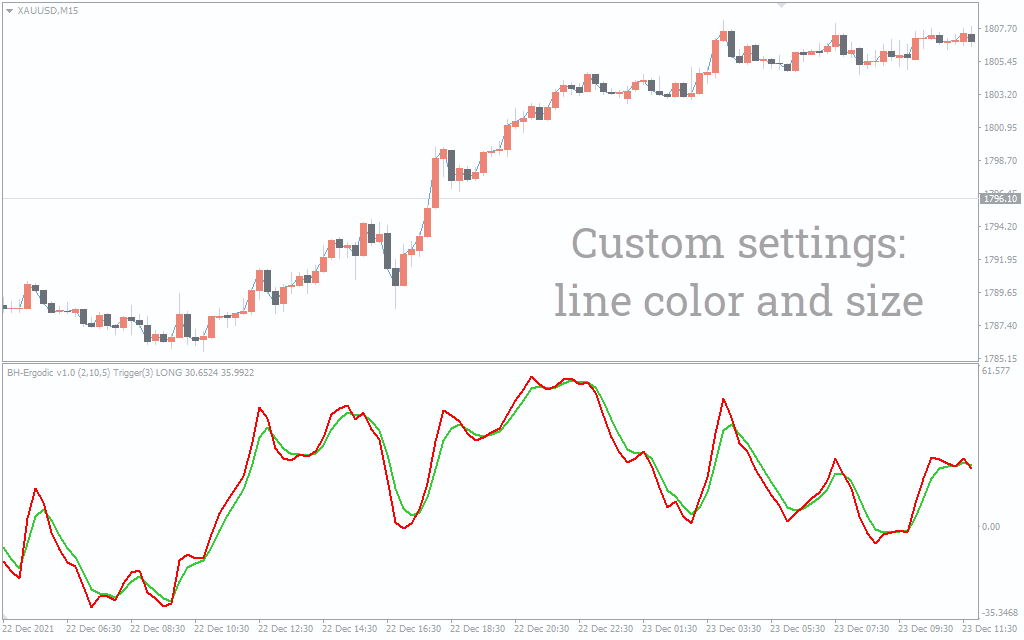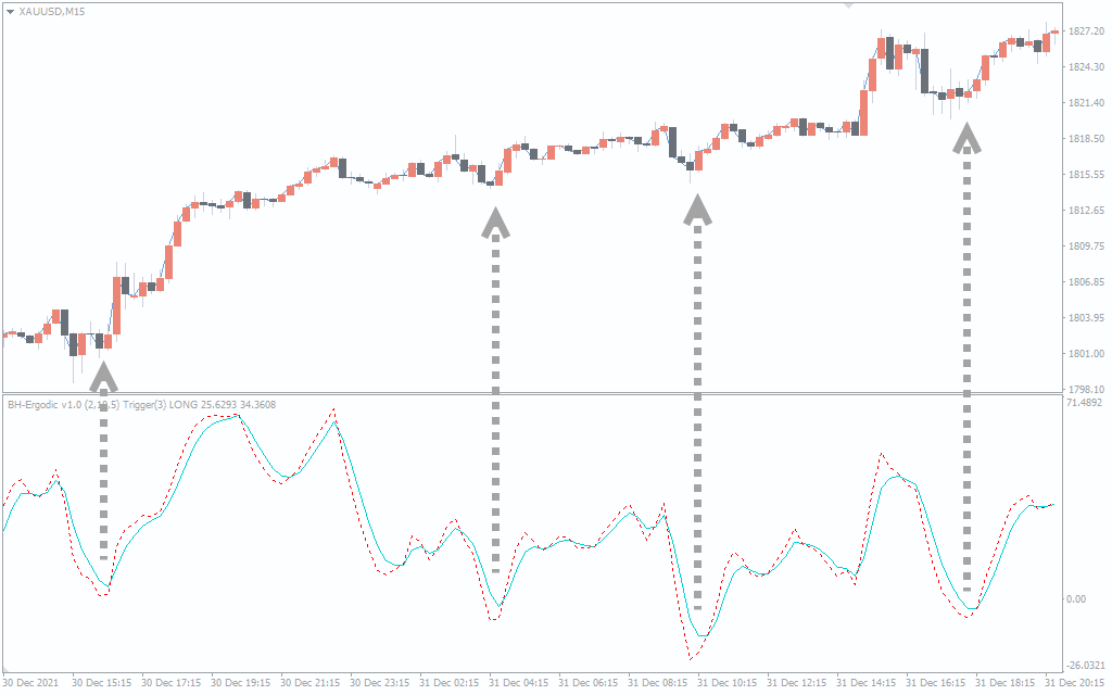 As long as the market is in a bullish trend, the BH Ergodic indicator tends to stay above the zero level.