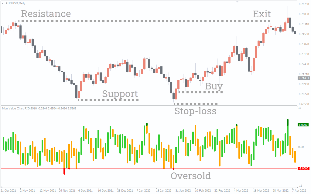 The Nice Value Chart Indicator is another technical oscillator designed to automatically detect overbought and oversold zones.