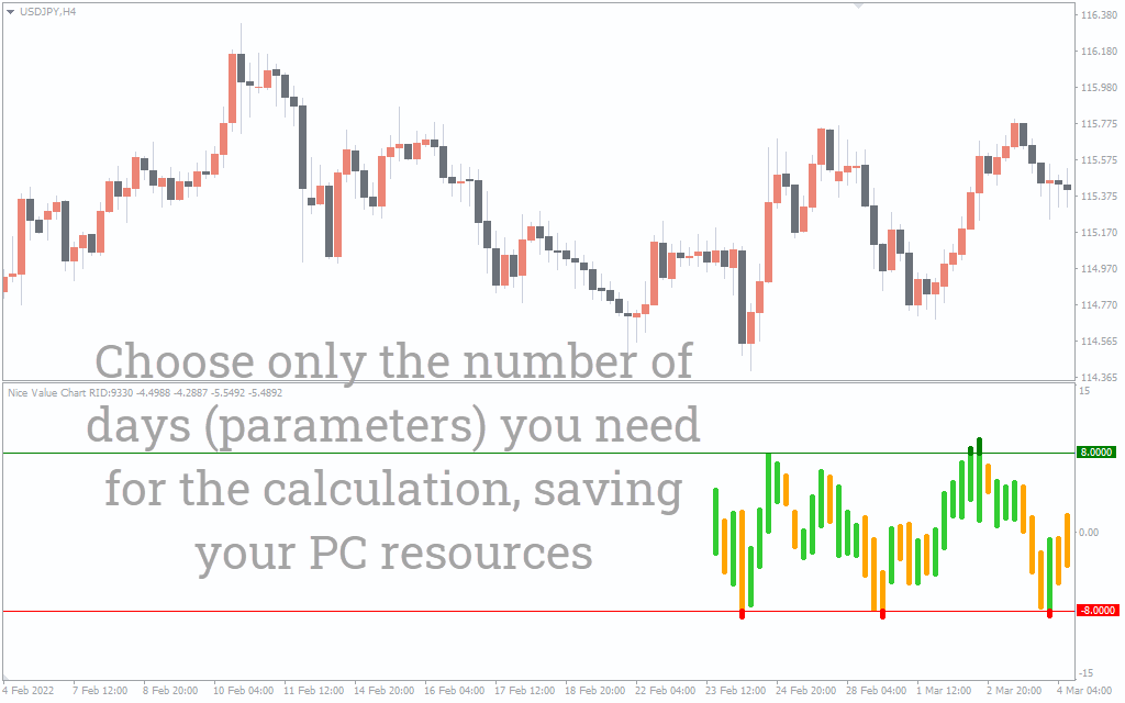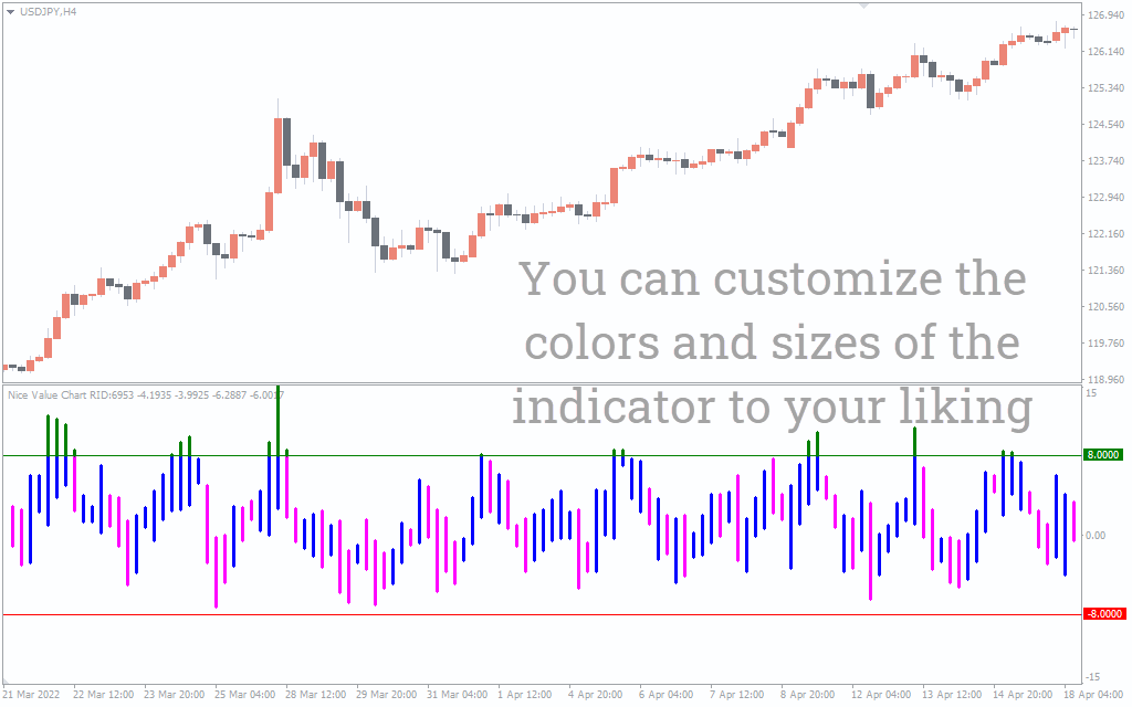 Compared to other oscillators, the Nice Value Chart Indicator has one distinctive feature – it is super pleasant to look at.