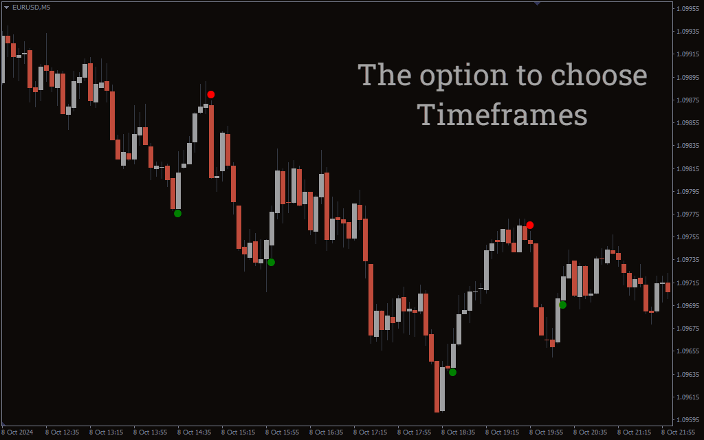 When a signal is generated, the indicator can also trigger a sound alert if enabled, ensuring that traders are notified promptly even if they are not actively monitoring the chart. This helps traders react quickly to market changes, improving the chances of executing successful trades. The visual cues combined with sound alerts make the indicator both user-friendly and effective for traders looking to streamline their trading process.
