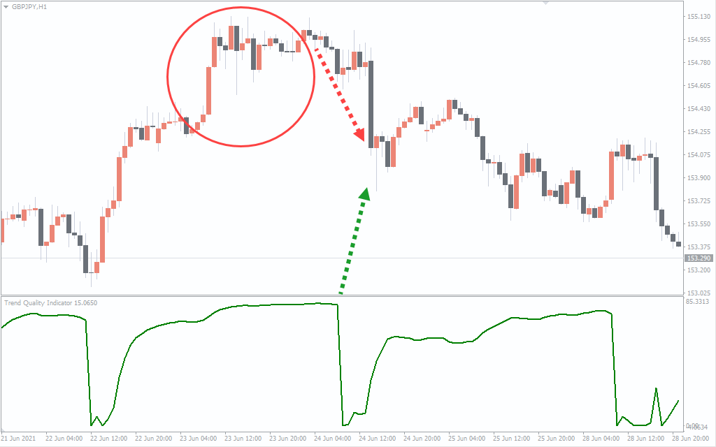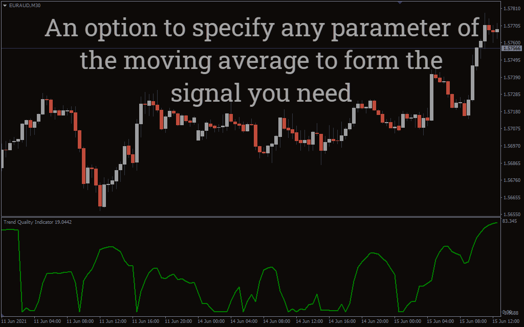 In a nutshell, the trend quality indicator attempts to estimate the trend in relation to the noise. Besides informing traders about trend reliability, it also measures the gradual strength. Therefore, it can be used in any time frame and currency pair.