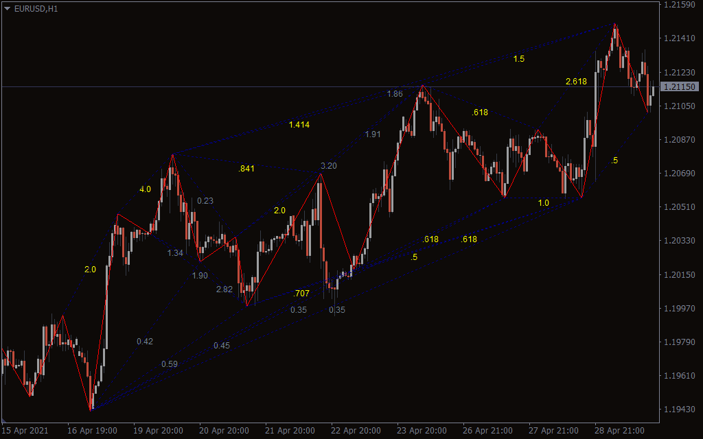 Moreover, the ZUP indicator for Metatrader can display FIBO FANS, FIBO Levels, Andrews’s Pitchfork, Fibo Time zones, ZIGZAG Peaks, and to build ZIGZAG Fibonacci.