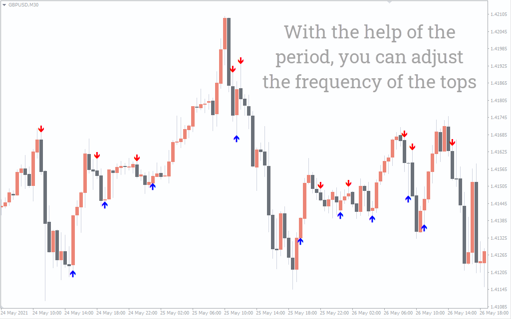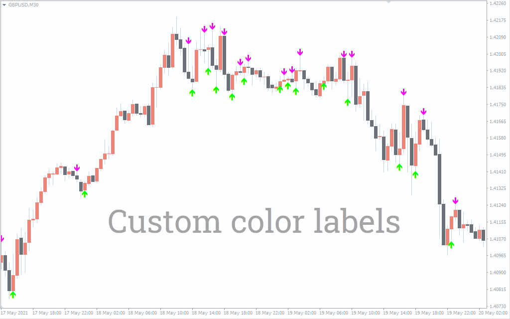 On the other hand, forex traders can place a SELL position once the RED arrow signals appear above the candle. The stop loss for this position can be above the previous swing high, with taking profits at the appearance of the opposite signal.