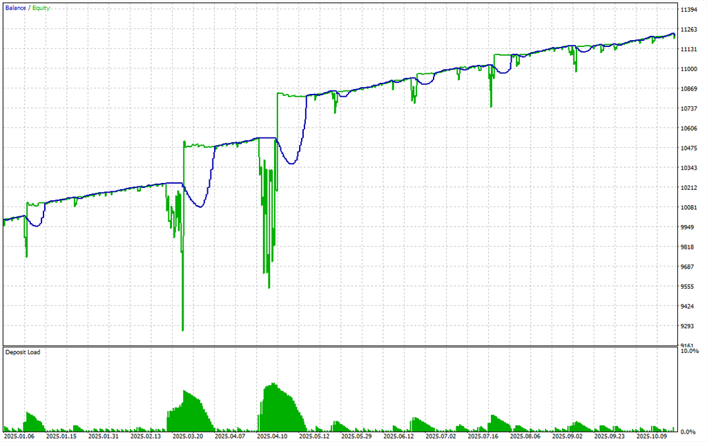 This hybrid model effectively balances profit maximization with controlled exposure, allowing the EA to maintain stable returns even through uncertain market cycles.