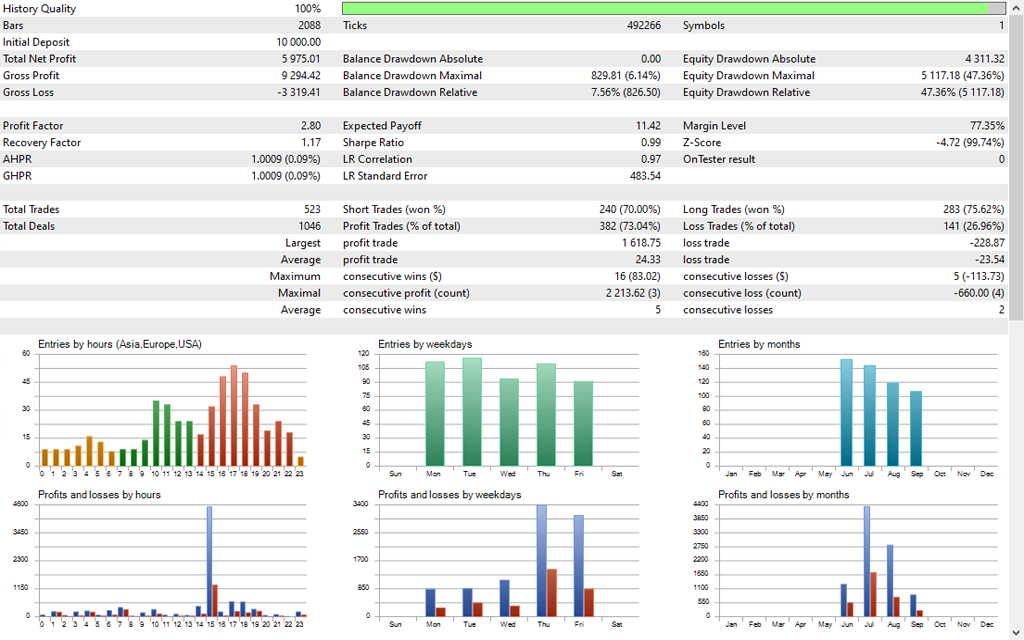 Based on my backtests on EURUSD H1, here are the key statistics: