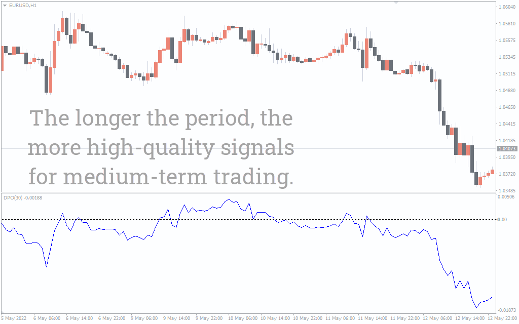 - A DPO line below the zero line indicates that prices are trending lower (SELL).