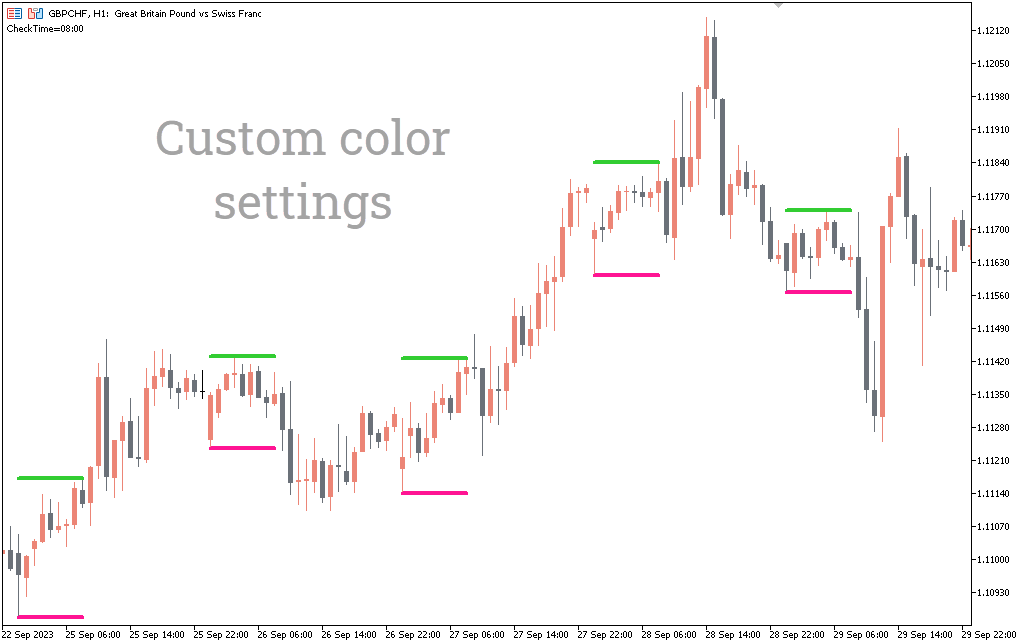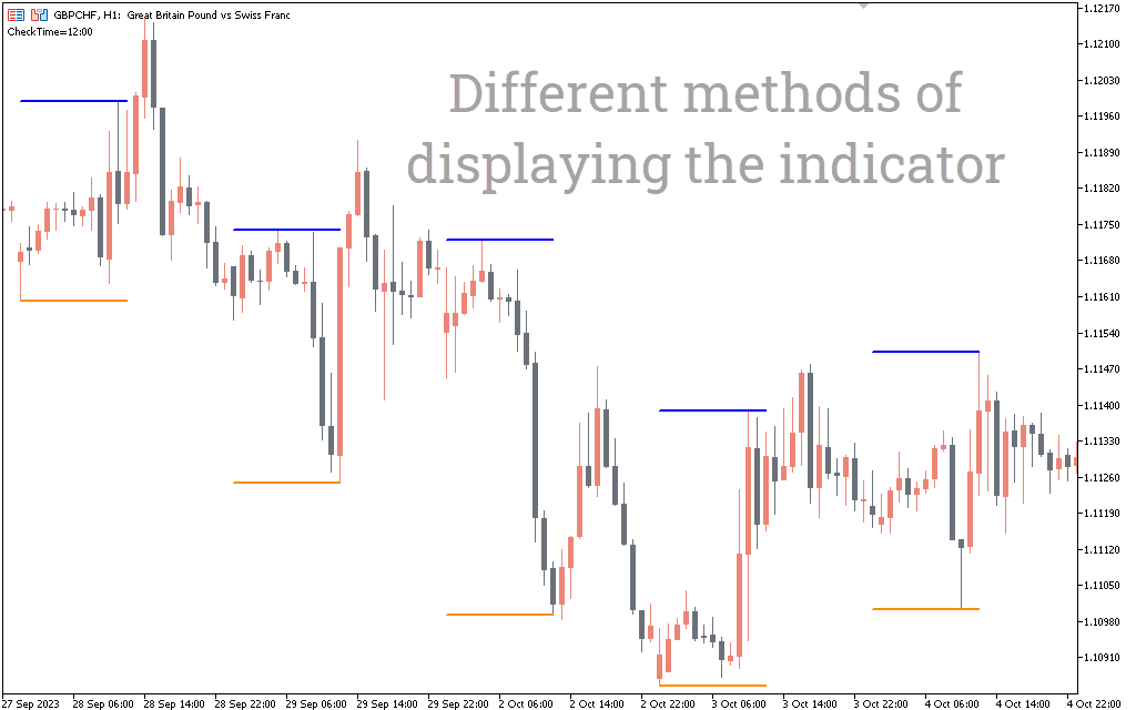 The indicator is ideal for trending market conditions. Thus, in a bear market, a forex trader can open a sell order if the price breaks and closes below the low of the morning range (orange line). Likewise, a buy order can be placed if the price breakout of the morning range is high (blue horizontal line) in a bull market.