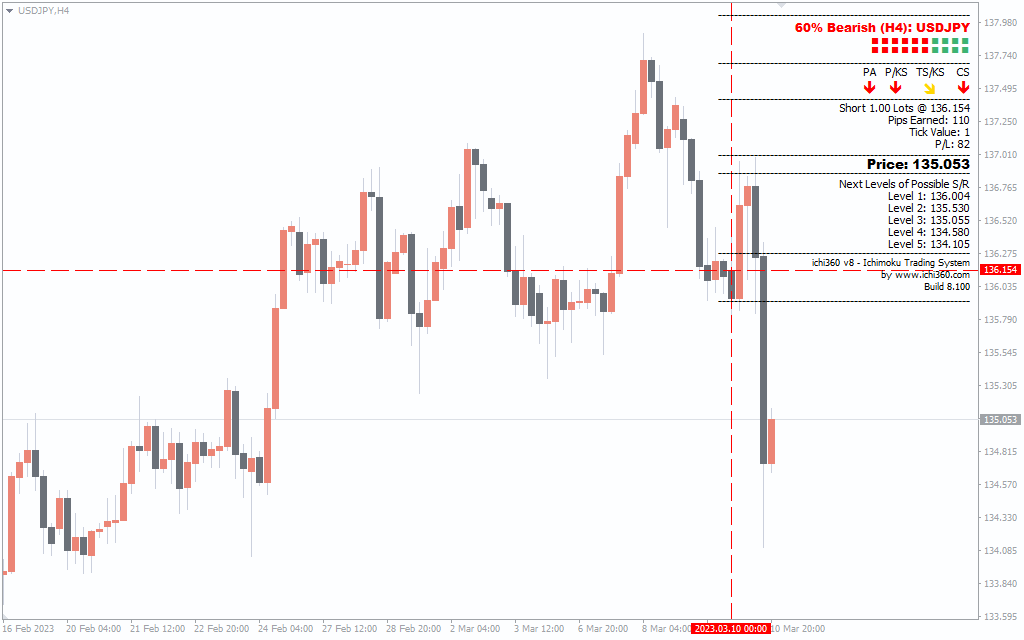 The above USD/JPY H4 chart shows the Ichi 360 v8 Indicator on the chart.
