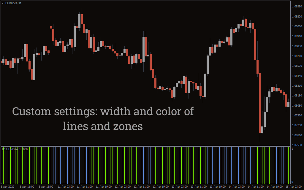 The indicator applies a basic way of delivering the trend signals. The vertical red and green bars in the indicator window tell you whether it is a bullish or bearish market trend. The green bars signal a bullish trend, and the red bars appear when the trend shifts to a bearish mood.