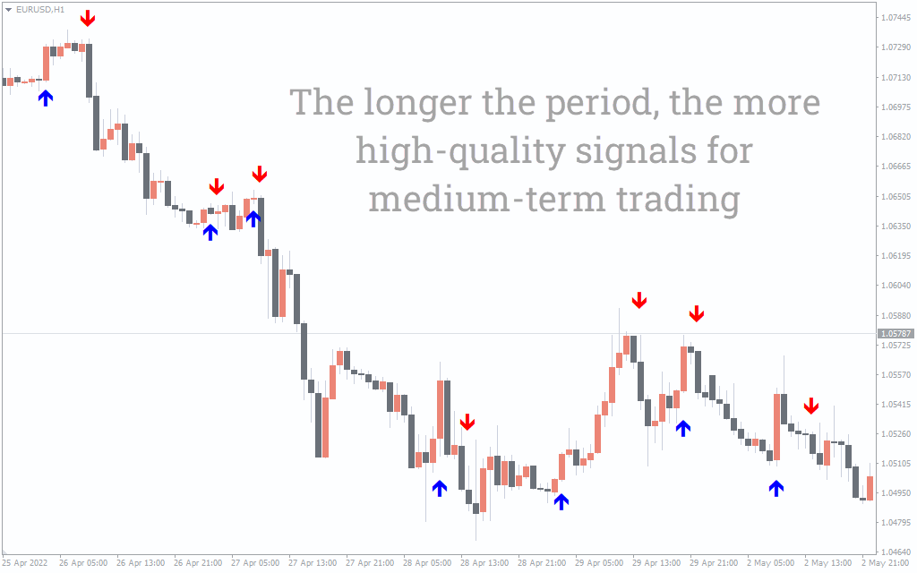 The mindhero MetaTrader indicator provides many trading signals per day. So, forex traders should prepare forex trading strategies using price action in a combination with other technical indicators to filter the trading signals. Additionally, trading signals in confluence with trend lines, support and resistance lines, channels, and other patterns dramatically increase the success rate of the indicator’s arrow trading signals.