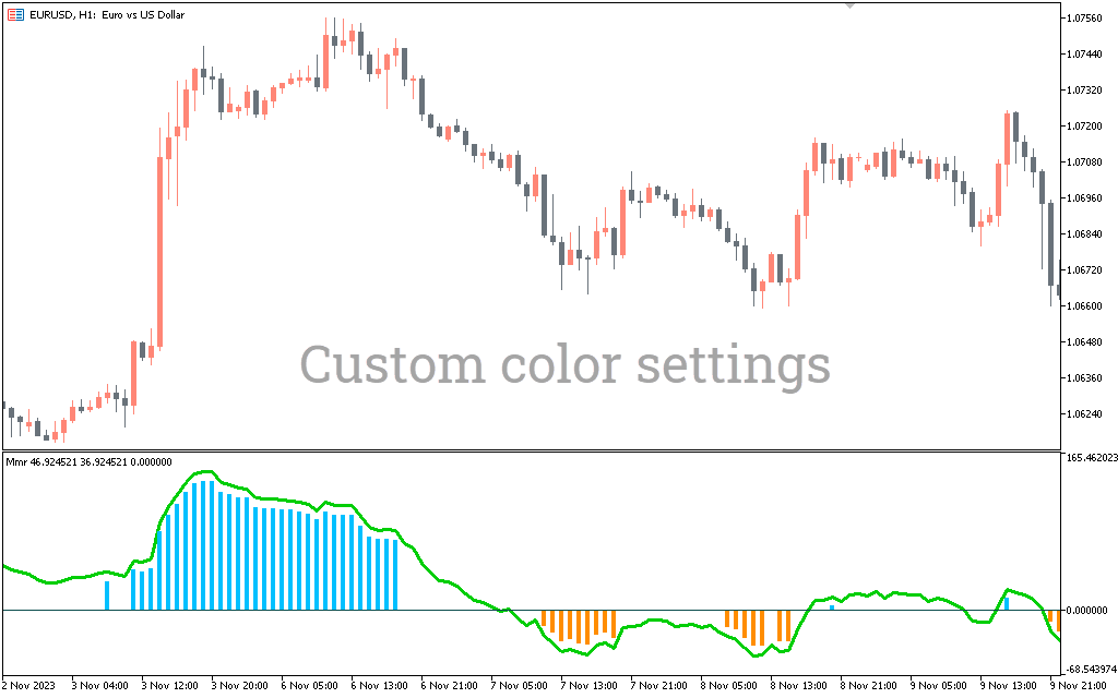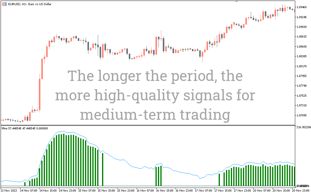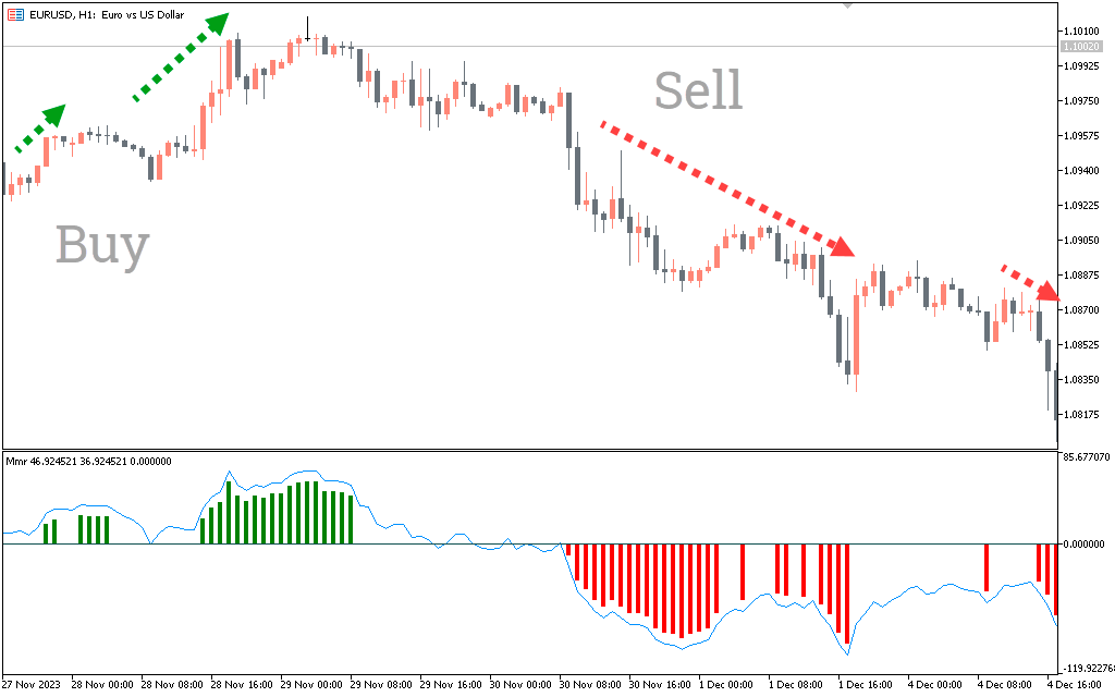 The MMR indicator for MT5 combines the MACD, RSI, EMA and LWMA indicators to create a histogram. Combinations of these 4 indicators provide trend-based Forex trading signals.