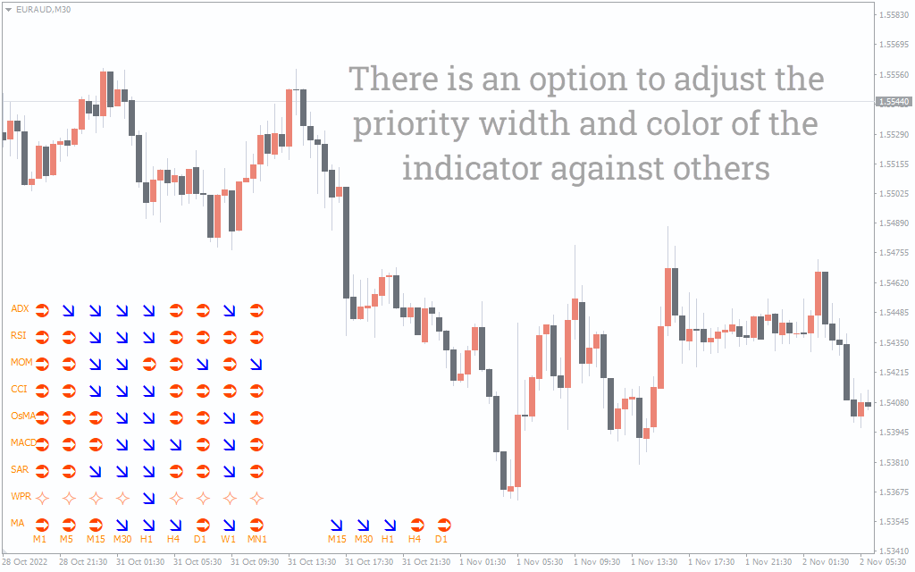 All of these indicators with the exception of MA are oscillators and tell about the overbought/oversold levels. Another aspect of the Indicator is these indicators show the trend’s direction on multiple timeframes ranging from 1min to 1 month. So, you can apply the indicator on all timeframes.