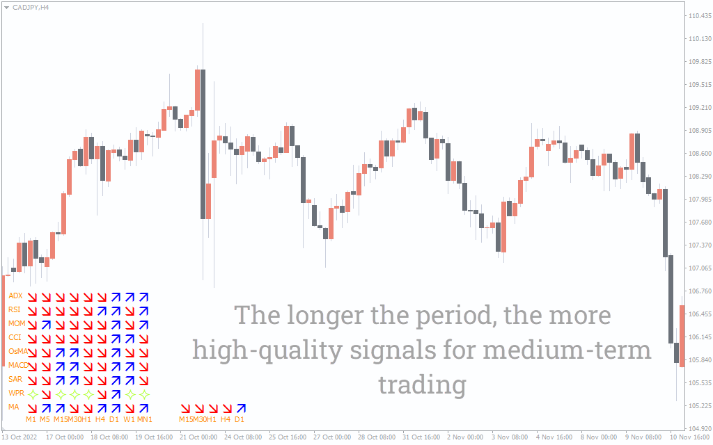 The Multi Trend Signal Indicator for MT4 applies multiple indicators on multiple timeframes to determine the trend’s direction. These indicators complement each other and act as confirmations. You can try Multi Trend Signal Indicator for free by downloading it from our website.