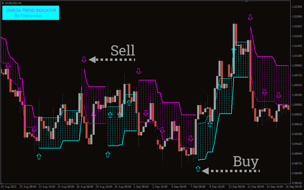 Forex BUY and SELL signals from the best Omega Trend Indicator. Find the direction of the trend.