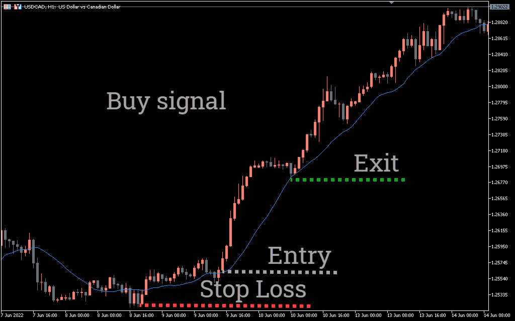 - Open a trade when the price rises above the indicator.