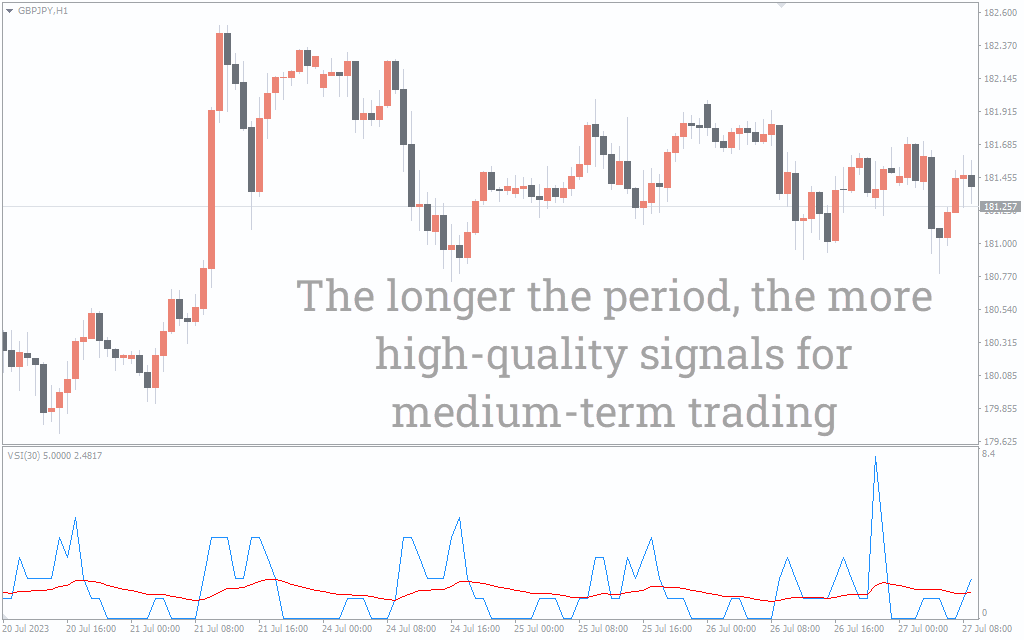 Furthermore, in some cases, sudden spikes in the volume of an asset may lead to a minor retracement, thereby creating trading opportunities for scalpers to catch the small moves. Therefore, the VSI indicator for MT4 would be a very handy tool for both scalpers and day/intraday traders to take advantage of the spikes in the market volume.