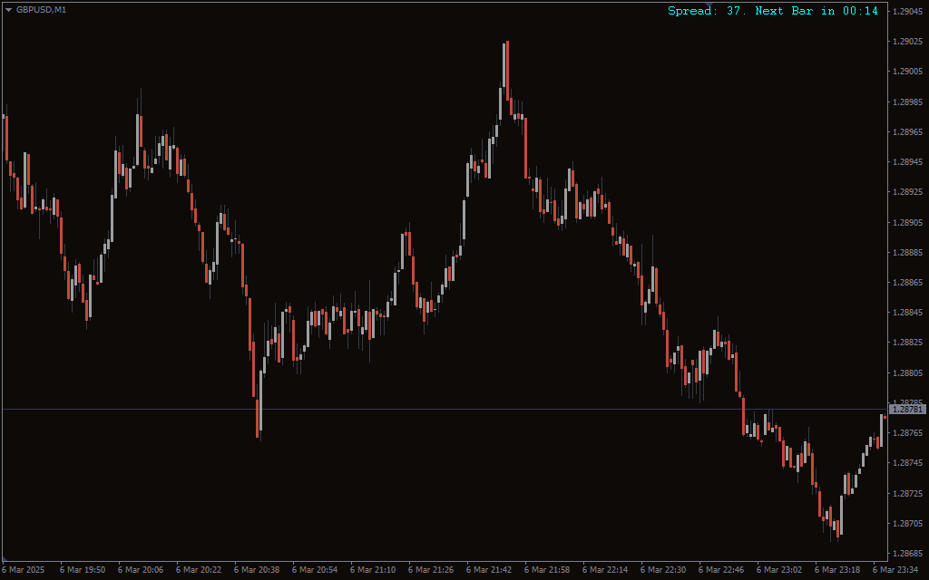 This indicator does not generate direct buy or sell signals but provides vital trading information that enhances decision-making. The remaining time displayed for the current candle helps traders execute trades at the right moment, ensuring they do not enter prematurely or too late in a trend. The spread display enables traders to assess market conditions before executing a trade, helping them avoid high spreads during volatile periods. By keeping an eye on these factors, traders can make better-informed decisions and minimize unnecessary trading costs.