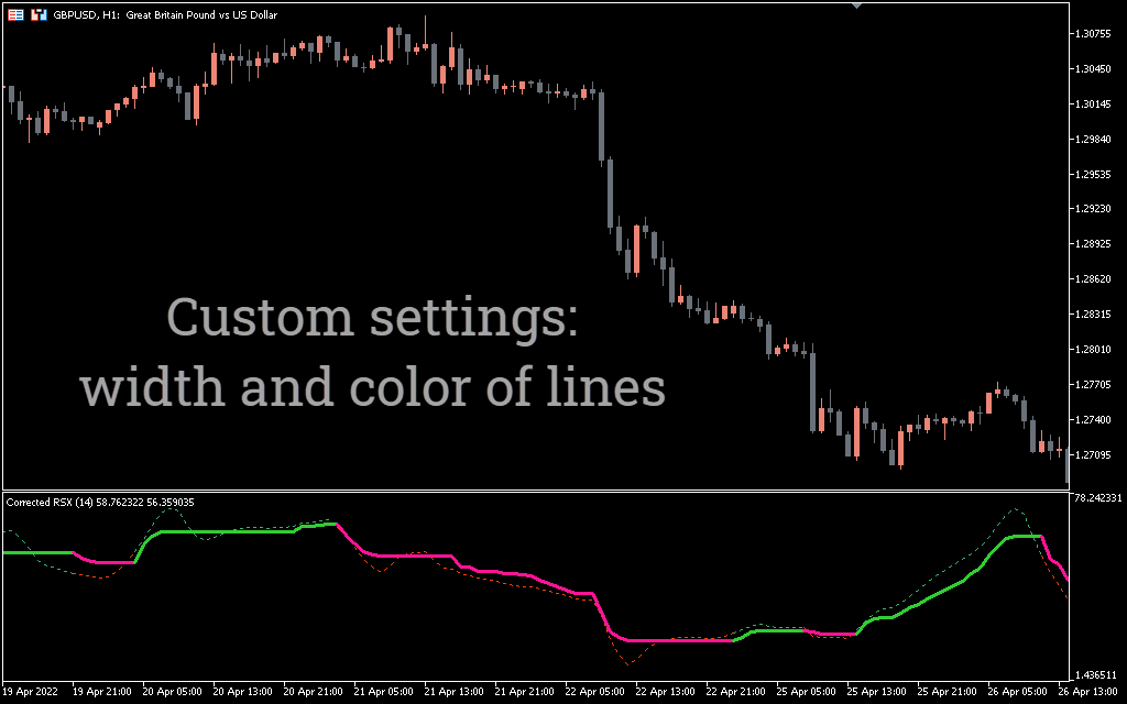 The Corrected RSX indicator determines the market dynamics and price features by converting the accumulated market history data. This improved version of RSI eliminates market noise to prevent false market signals, hence more accurate signals. The best part is that the indicator can be smoothed without lag.