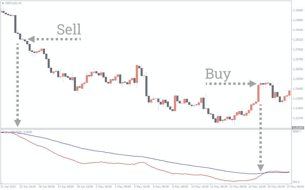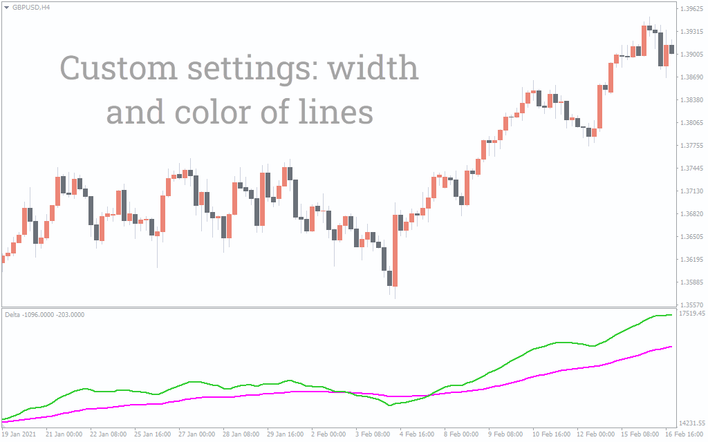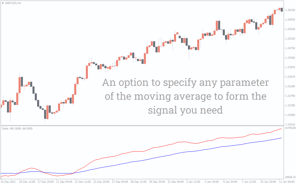 The above GBP/USD H4 chart shows the indicator on the chart. To determine BUY and SELL signals, traders need to look at the blue and red lines. It is an excellent indicator for displaying buy and sell signals. We must know that delta bars can be positive or negative.