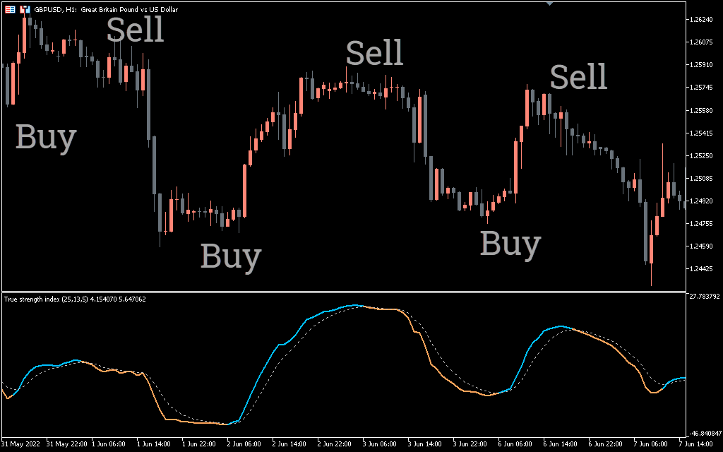 The Ergodic TSI Indicator is one of the simplest indicators. You just need to wait for the indicator to cross below or above the zero line. The area above the zero line is bullish and the area above the center line is bearish.