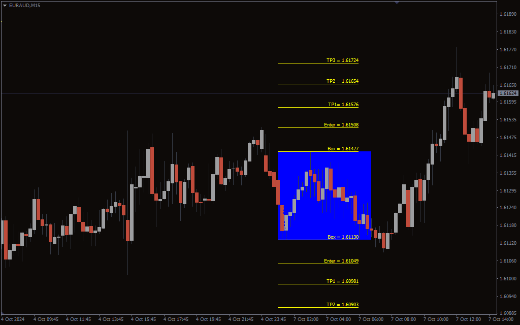 This indicator is particularly useful for day traders and scalpers who look for breakout opportunities during high volatility periods, such as the opening of the London or New York sessions. It helps traders capture price movements as they break out of the defined range, allowing for precise and timely trade entries.