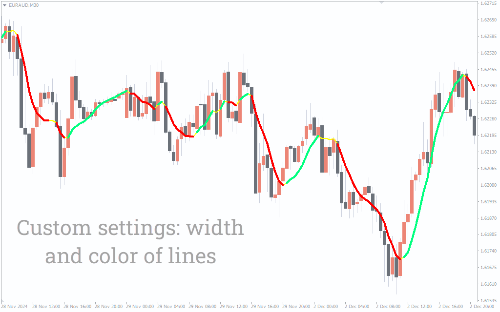 The indicator also reduces false signals by filtering out market noise, ensuring that traders act on reliable data. Additionally, its ability to display trend changes without delay provides a significant advantage over traditional moving averages, which often lag behind actual price action.