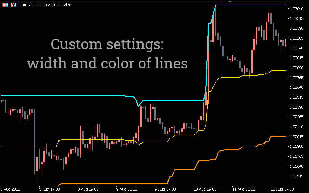 This Metatrader indicator works well on all intraday charts and higher timeframes such as daily, weekly and monthly charts. Forex traders using a multi time frame (mtf) trading strategy will find it very effective as it reflects the trend in higher time frames. Also, it allows the technical trader to find the best entry point on the lower time frame.