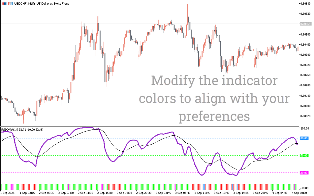 The color-coded signals help with quick decision-making. For example, magenta may represent buy triggers, and blue may indicate sell triggers. Traders often use the centerline (usually 50) as a key divider: staying above it suggests a bullish trend, while staying below suggests a bearish one.
