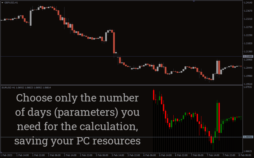The indicator is simple to apply and can be used by new and advanced forex traders. However, traders should note that it is not possible to add any indicators to the second price chart.