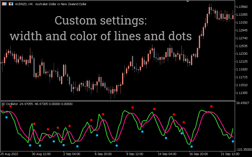 The 3d Oscillator indicator is an advanced version of the traditional stochastic oscillator. It consists of two lines: %K and %D. The %K line represents the current market position. In contrast, the %D line is a moving average of the %K line used to generate signals and identify potential entry or exit points.
