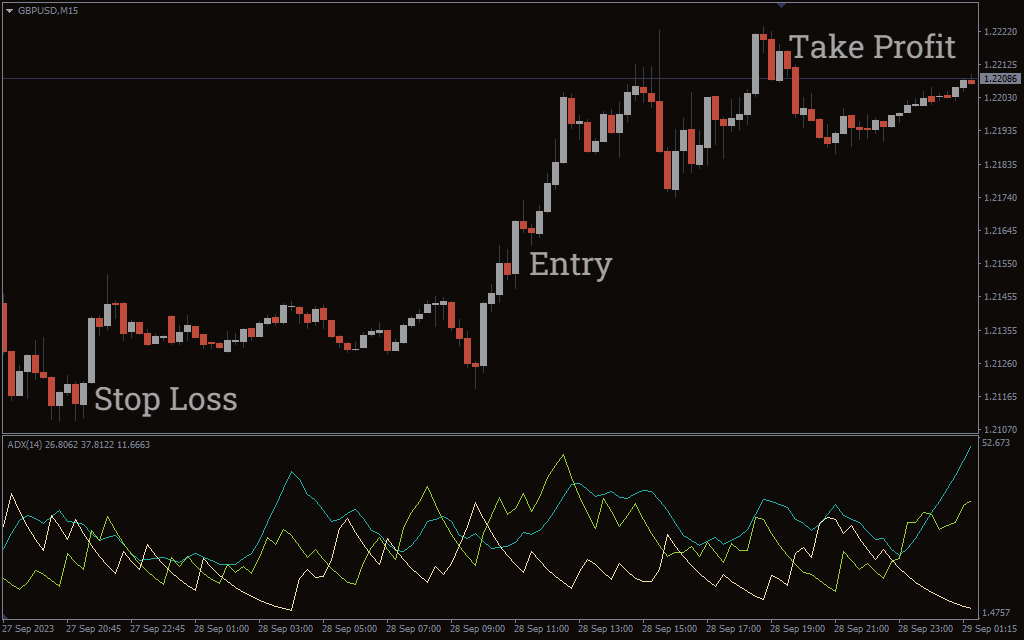 Wait for the ADX Lucki line to go above the 25 level for the buy entry signal. The +DI should be above the -DI line.