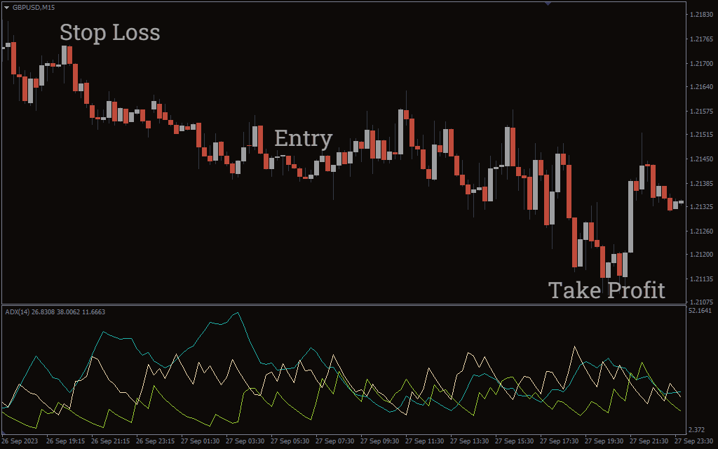 Wait for the ADX line above the 25 level for the sell entry signal. Ensure the -DI line is above the +DI line.