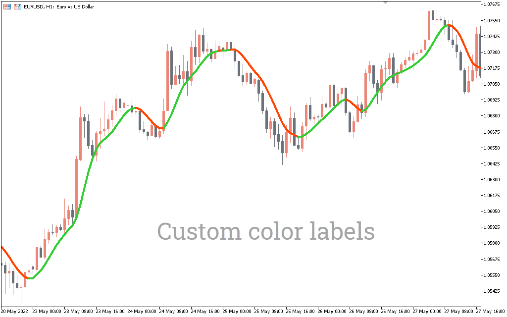 The indicator follows the trend and is best suited for top-down technical analysis. Thus, Forex traders can apply the indicator on a higher time frame price chart to determine the underlying market trend. And use lower timeframe entry signals for a better entry point.