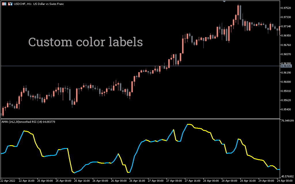 The AMA Smoothed RSI indicator is an easy to use MT5 indicator that works like a traditional RSI. It plots a signal line similar to RSI, but with some changes.