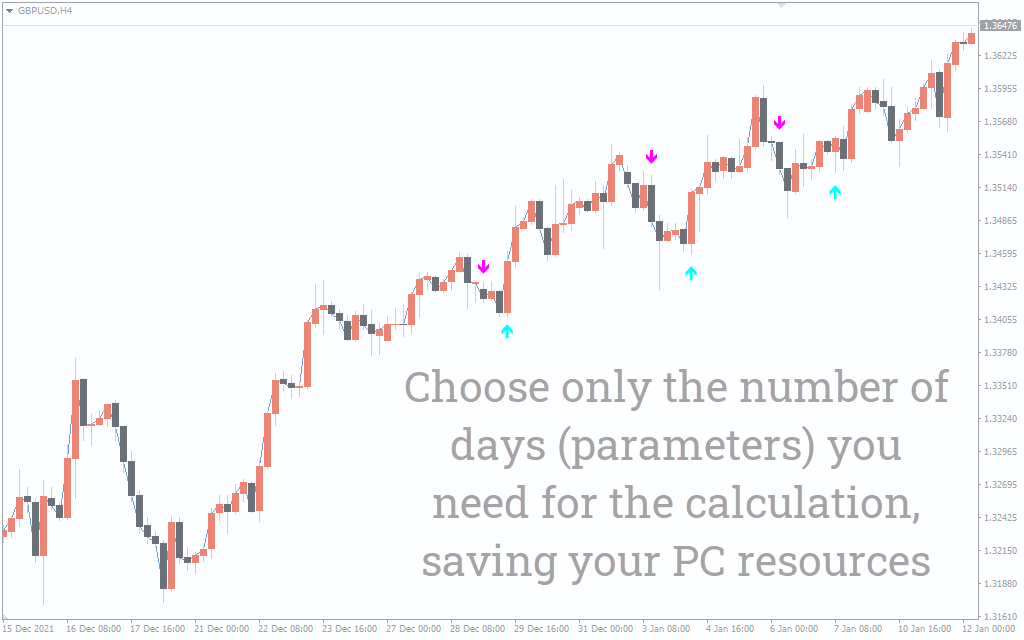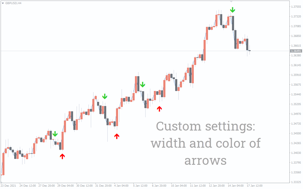 It’s important to understand that the indicator may occasionally repaint two consecutive arrows of different colors. As a result, it is important to wait for a trend to completely develop before taking positions.