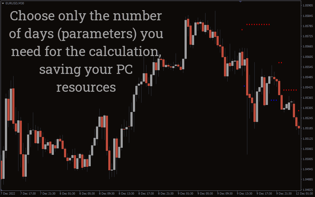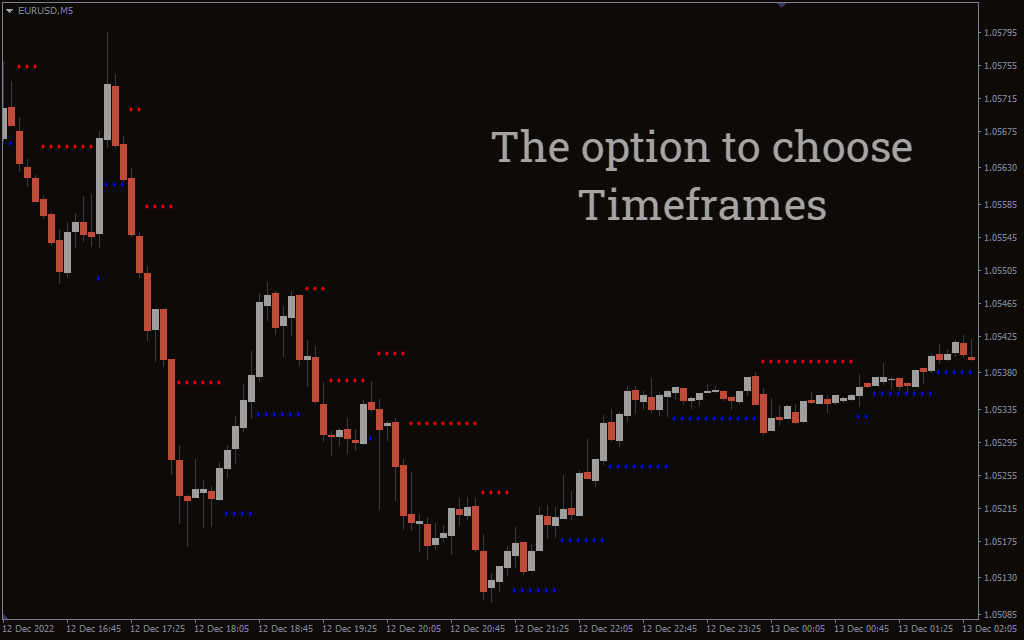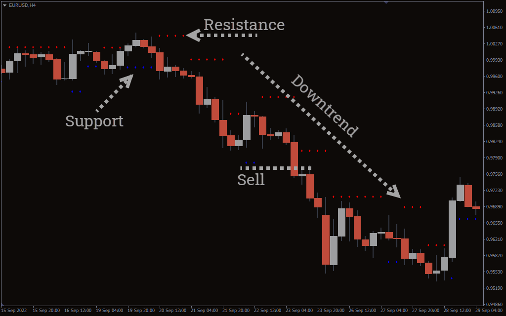 The indicator applies red dots to show the upcoming resistance. On the other hand, the blue dots outline potential support zones. These levels are plotted based on recent swing highs and lows of the market.