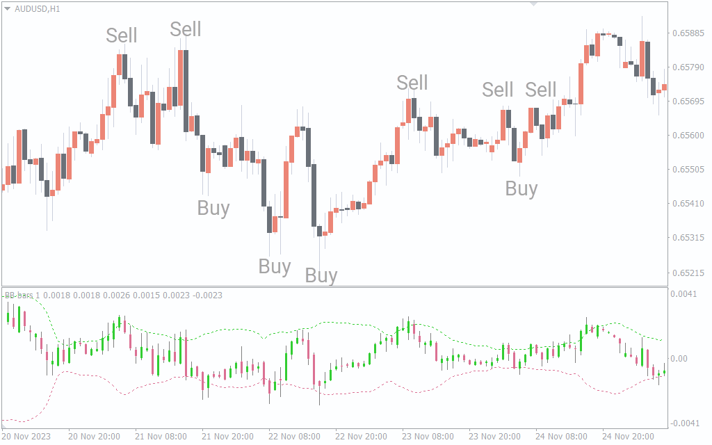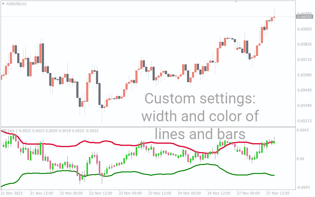 In summary, the Bollinger band bars indicator for MT4 is a mini chart in a separate indicator window.