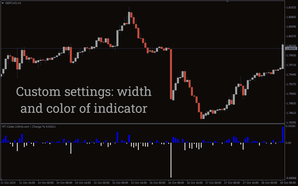 The indicator works across all time frames and asset classes, making it suitable for short-term traders and long-term investors alike. Its simple visual representation of price changes allows traders to react to market movements more effectively.