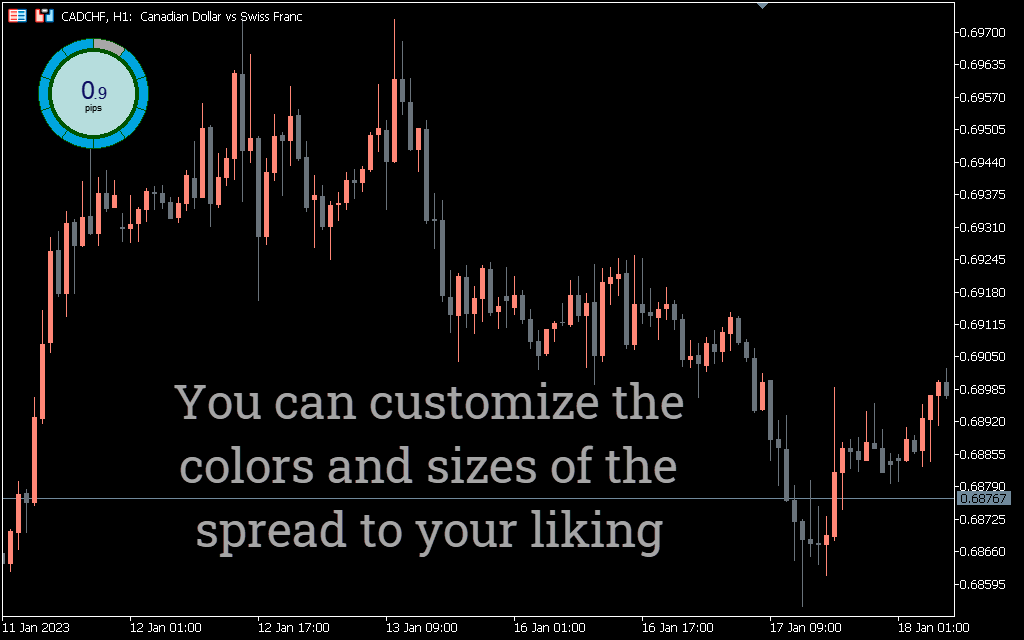 The picture above shows how the indicator would look on your MT5 chart. Note that this indicator is also not a signal for BUY/SELL trades; but one that will help you keep an eye on the current spread of a trading instrument.