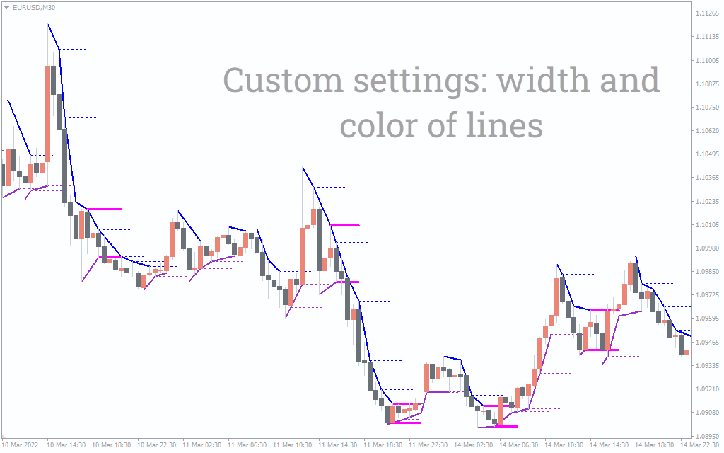 The special feature of this indicator is that it does not use any complex strategies and calculations to identify the trend. Only the price movement in terms of higher high and lower low formations is considered to identify the trend.