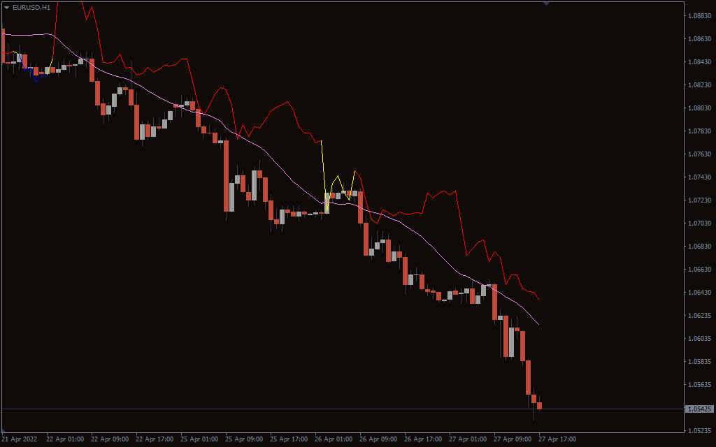 The chart above shows the trendline of EURUSD, H1 is rising beginning with a market reversal on April 26th, 2022 from a low price of 1.052 to currently trade at 1.054. Since Delta MA reflect changes in the simple moving average, when the SMA is bearish, Delta Ma also goes down incrementally below the zero line.