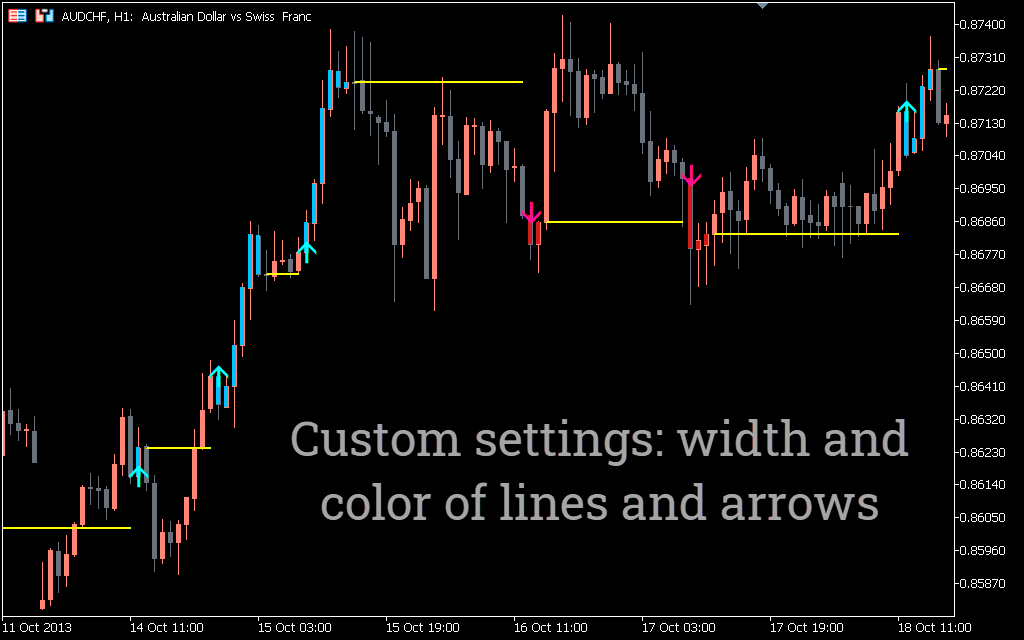 The image above shows how the Easy Trend Visualizer works on an AUDCHF currency pair. It also demonstrates how you can combine the indicator’s signal with price action for better efficiency.