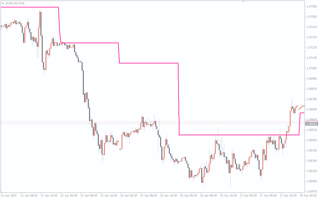The indicator plots a pink indicator line on the price chart. Price movement above the indicator is bullish and any movement below is bearish. So, the best trading strategy is to enter the market based on the crossover of the price and the indicator line.
