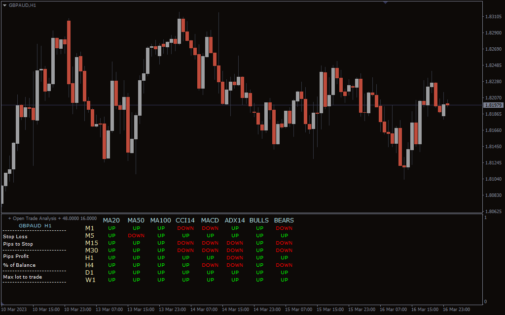 Furthermore, it helps traders to see the trend in multiple time frames and trade in the direction of the overall market trend. Additionally, it shows the stop loss, pips to stop, pips in profit of any open position. The indicator display is very neat and is very helpful for both new and advanced forex traders.