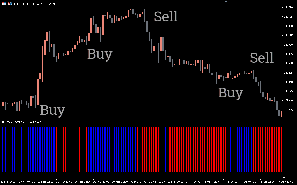 The flat trend indicator is suitable for all types of traders. If you want to determine price direction or get buy and sell signals, this is the right tool for you. You just need to get familiar with the color changes. Just buy when the indicator bars are blue and go short when the indicator bars are red. If the bars are thin, it is prudent to stay away from the market and wait for it to start trending.