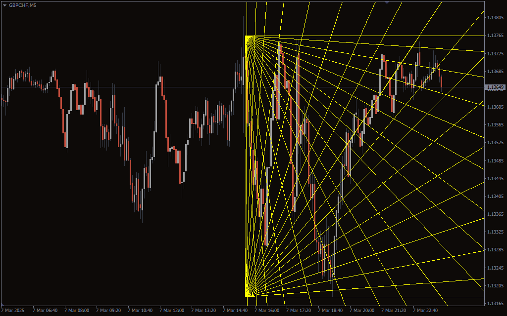 When price approaches a Gann fan angle and aligns with a Fibonacci retracement level, it often indicates a strong area of support or resistance. If the price finds support at a lower Gann angle and a Fibonacci level, it suggests potential bullish momentum, signaling a buying opportunity. Conversely, when price struggles to break through an upper Gann angle and a Fibonacci retracement level, it often indicates resistance, suggesting a potential selling opportunity. Traders can also observe price action around these levels to confirm entries and exits, as market reactions to Gann and Fibonacci confluences often provide clear signals.