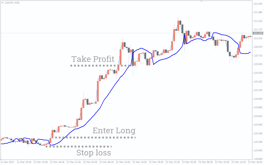The USDJPY M30 price chart below shows an example of a buy trade.