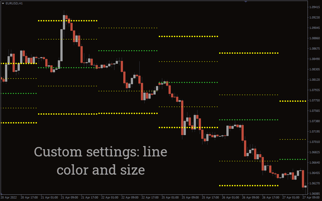 The gPivot ResSup indicator for MetaTrader is a forex trading tool that automatically identifies and plots key zones known as pivot points. These levels hold great significance because they act as dynamic support and resistance where the price of an asset is likely to reverse.