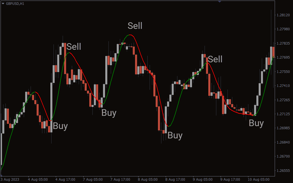 Traders should buy with a stop loss below the previous swing low if the indicator line turns green. Similarly, traders should open a sell trade with a stop loss above the swing high in a red line. Traders should consider exiting the position at an opposite trading signal.